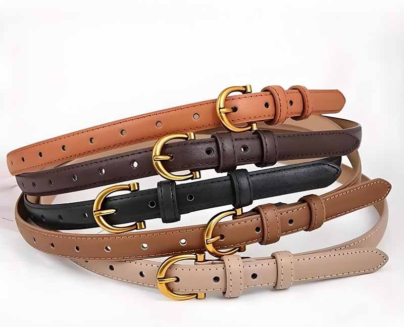 • Casual Belts: Matte, antique brass, or roller buckles.
