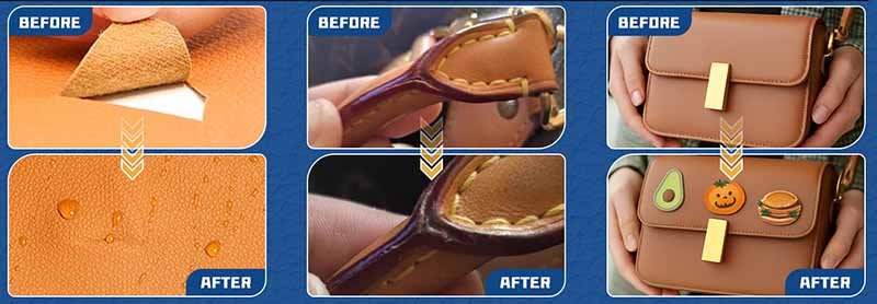 Luxury leather goods often use light hues — ivory, sand, tan — where even a slight glue discoloration ruins aesthetics. A suitable adhesive should: