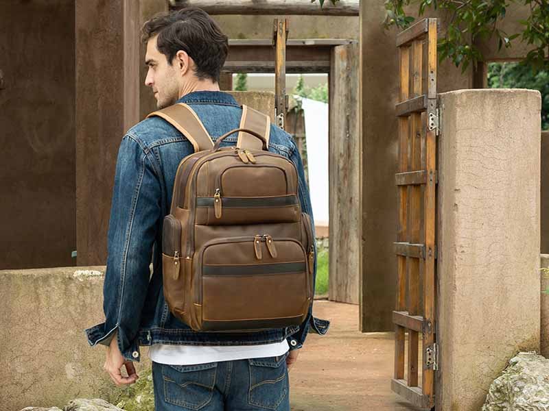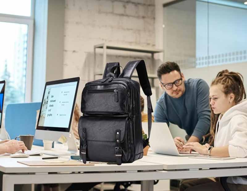 Where straps or handles attach, reinforcement is essential: rivets, bar-tacks, and backing plates prevent stress tears. A best-in-class men’s leather backpack includes internal anchor loops or cable tie points so users can tether the bag to fixed objects — a subtle but powerful anti-theft detail.