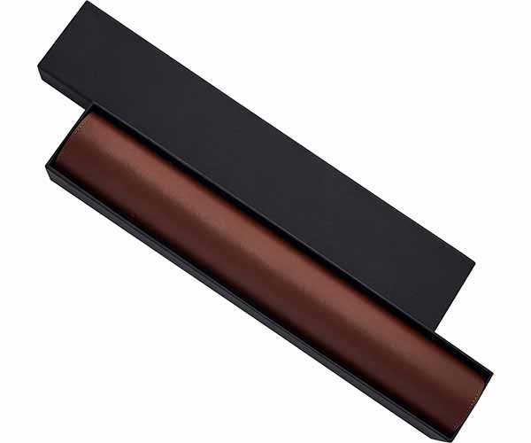 Often paired with matching leather coasters, pen trays, or mouse pads in gift boxes