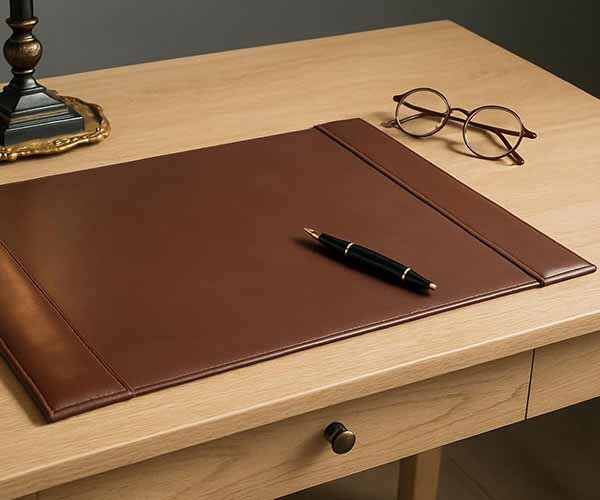 - Embossed or foil-stamped logos turn desk pads into brand touchpoints