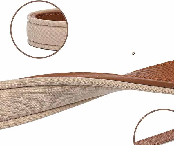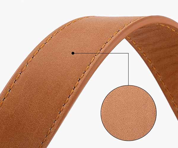 Single-layer leather without internal reinforcement often stretches over time, especially in medium and large dog sizes.