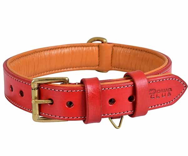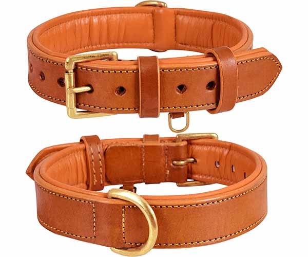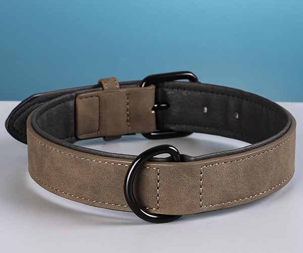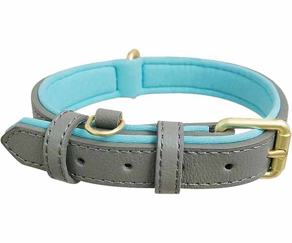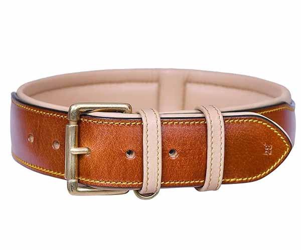 A comfort-focused padded leather dog collar designed for long daily wear.