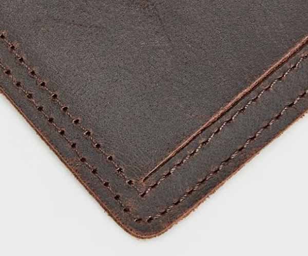 • Full-grain or top-grain cowhide (luxury feel, strong edge hold)