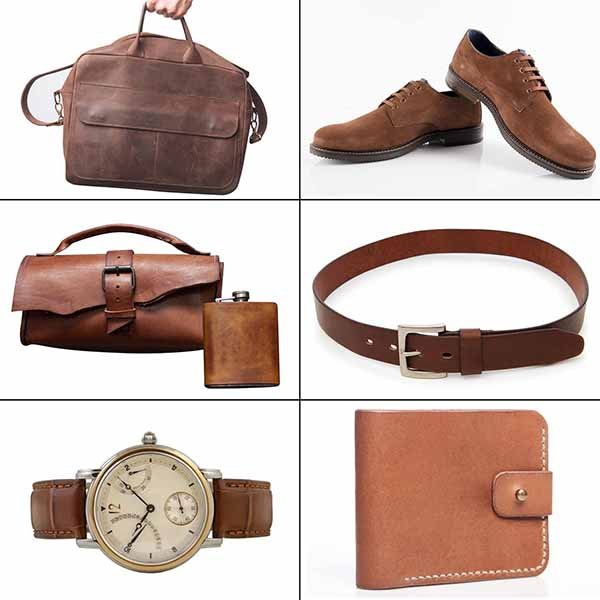 - Leather bags, wallets, belts, and functional accessories
