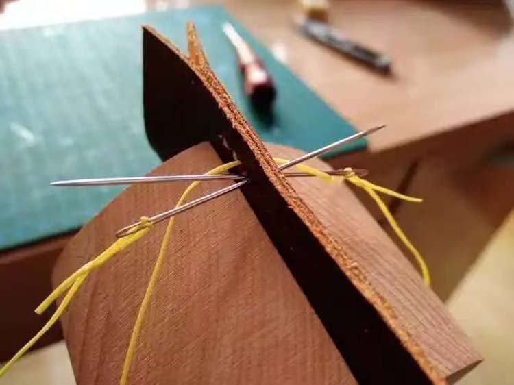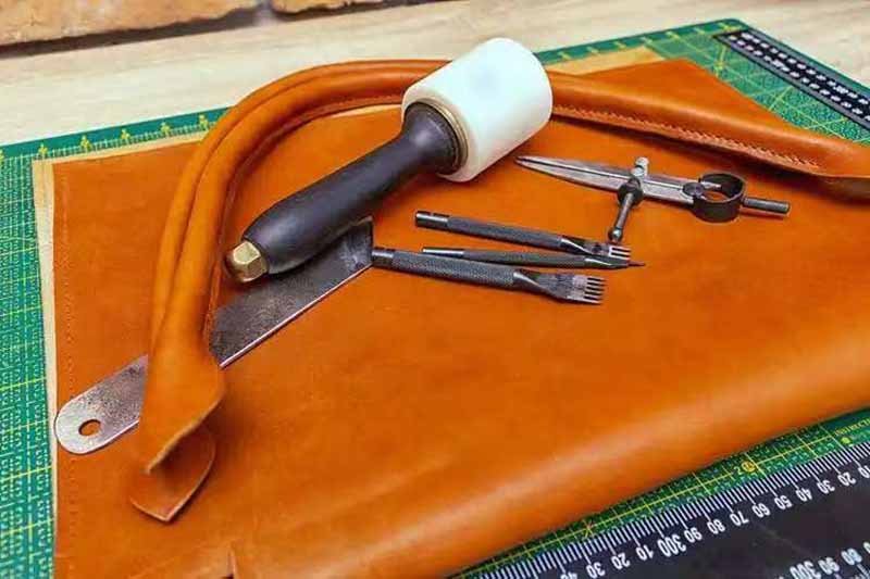 Before sewing, layers of leather are temporarily bonded using contact cement or water-based leather glue. This stabilizes edges and reduces slippage when punching holes. Avoid pins (which can permanently mark leather). Instead, use binder clips or double-sided leather tape to align panels cleanly.