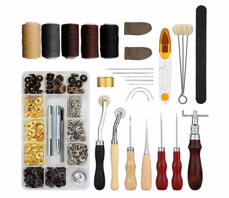 Essential hand-stitching tools include leather needles, waxed thread, pricking irons, awls, a stitching pony, and edge groovers. High-quality tools ensure clean holes, even tension, and strong, durable seams that define professional leather craftsmanship.
