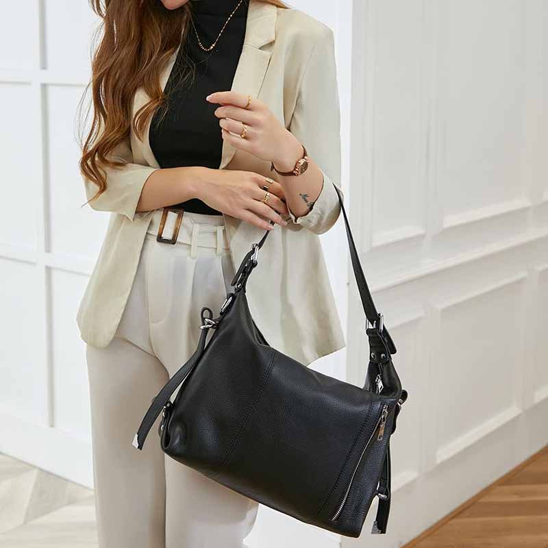 Leather handbags from China use a wide range of materials — from full-grain and top-grain cowhide to split leather, PU, and recycled eco-leather. The quality, texture, and cost depend on the leather grade, tanning process, and finishing technique chosen by the manufacturer and buyer.