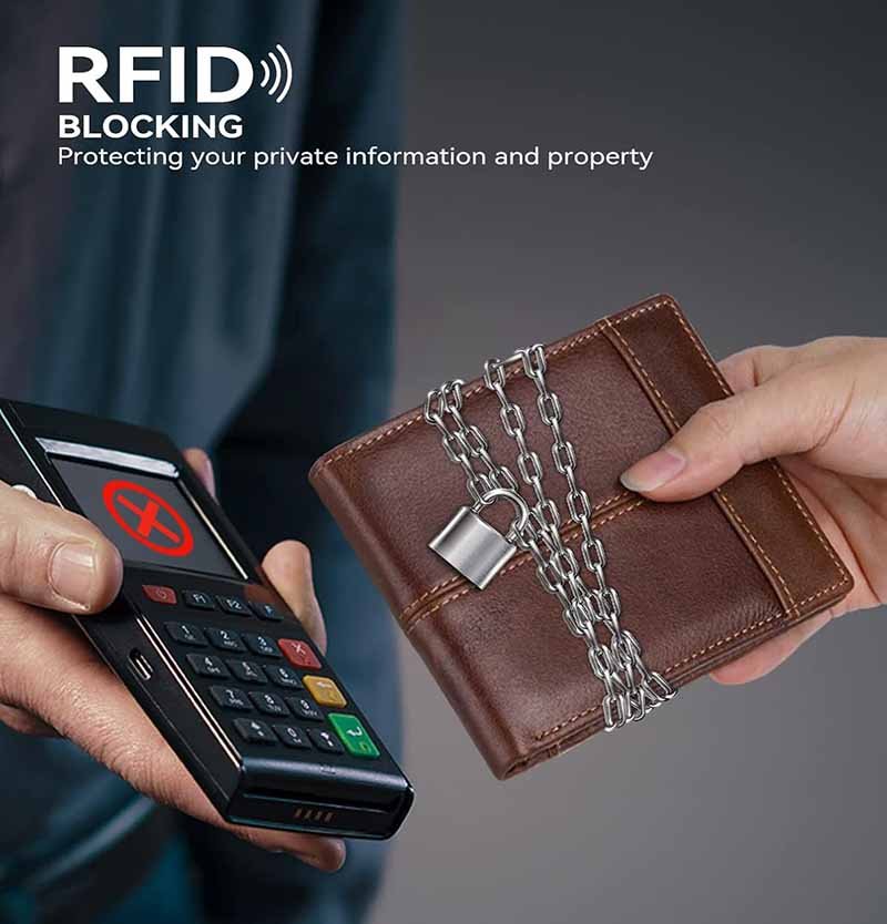 An RFID wallet is a specially designed wallet lined with metallic or conductive material that blocks radio frequency identification signals used in contactless cards and IDs. It prevents unauthorized scanners from reading personal data, protecting you from digital pickpocketing or identity theft. RFID wallets are ideal for travelers, professionals, and anyone using NFC-enabled credit cards or electronic passports.