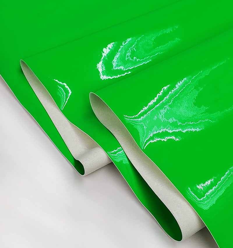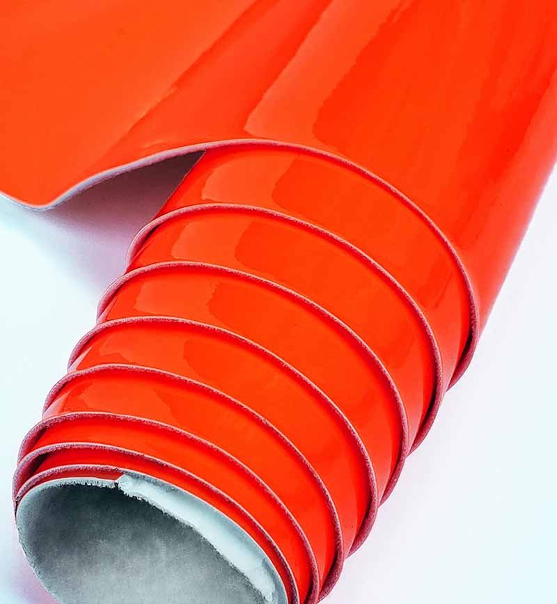 High-end production lines use roller or curtain coating systems, ensuring precision up to 5 microns in film thickness. For luxury-grade patent leather, up to 5–7 coats may be applied, followed by thermal curing at 80–120°C to achieve maximum hardness and gloss index (measured >90 GU at 60°).